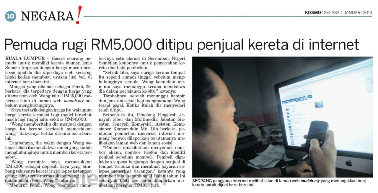 ACAPKALI KITA MENDENGAR TENTANG PENIPUAN SECARA MAYA KETIKA MEMBELI BARANGAN SECARA ONLINE ..